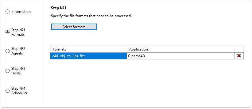 If you don’t have supported software installed on the server, but you have another PC on the network with the necessary software, consider the following scenario. Let’s say you have a computer with Cinema4D installed on your network. In this case, select the formats that correspond to the Cinema4D program: